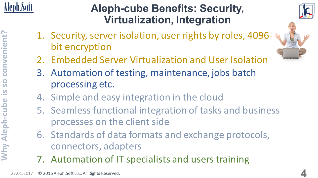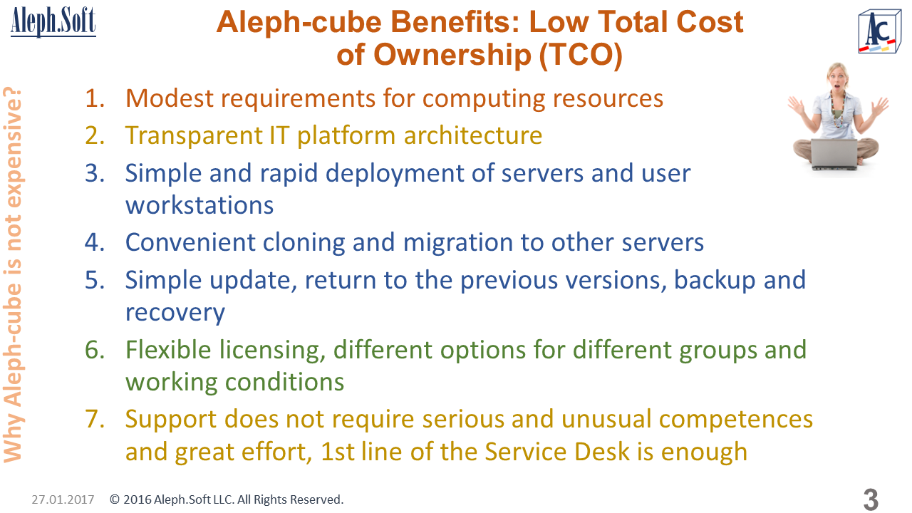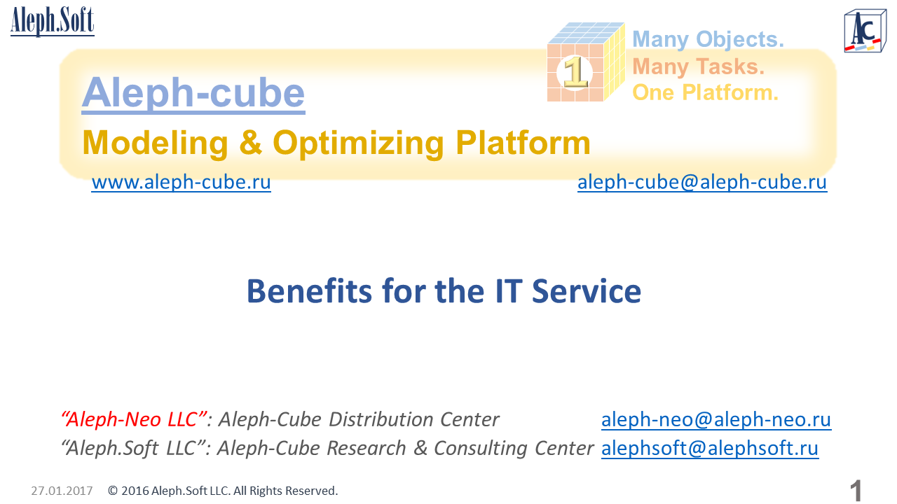 Aleph-cube 2-3: Benefits for the IT Service. 27.01.2017.