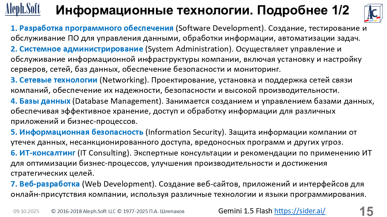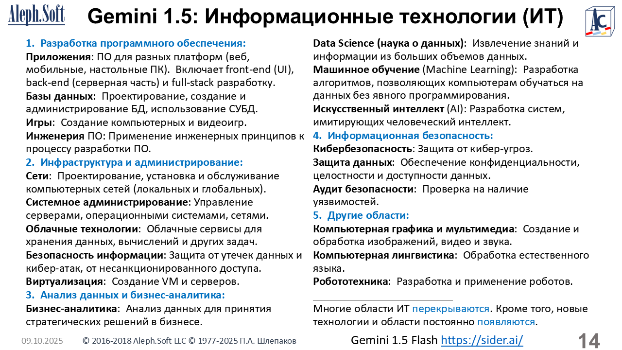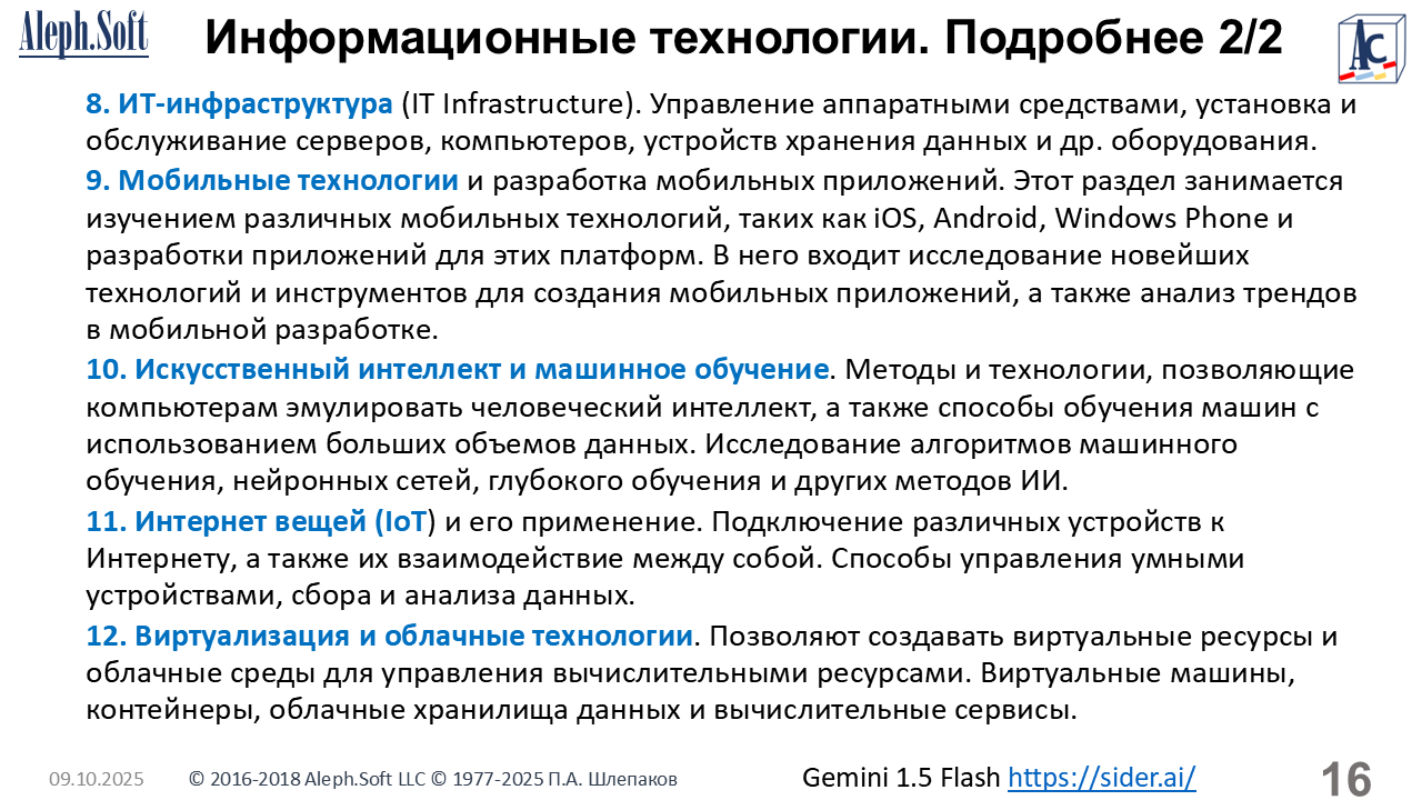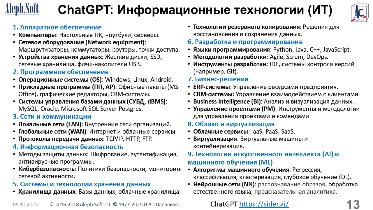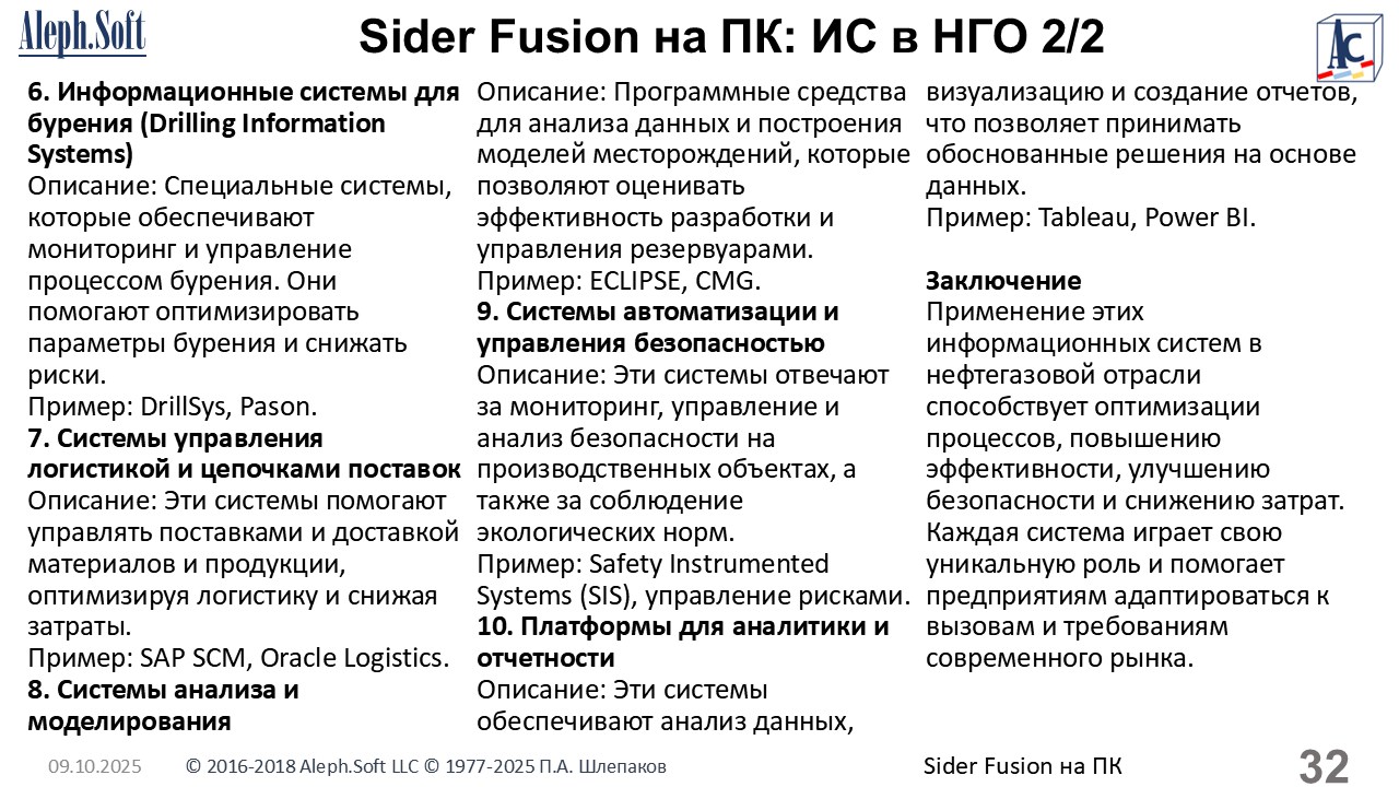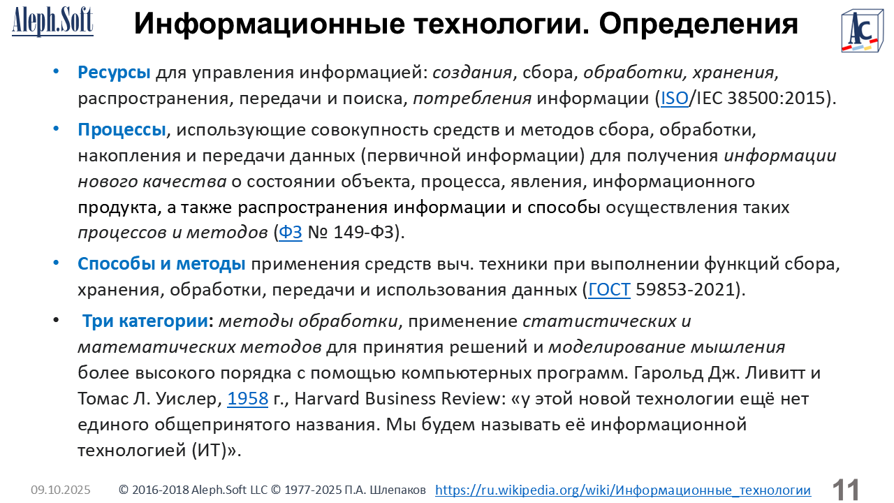 Aleph-cube 9-5-1: Информационные системы и IT технологии в нефтегазовой отрасли. Единый подход. Российский государственный геологоразведочный университет (МГРИ). Нефтегазовый факультет. Раздел 1. Введение в информационные технологии (ИТ) в нефтегазовой отрасли (НГО). Предмет изучения. Методы и инструменты. 2025.