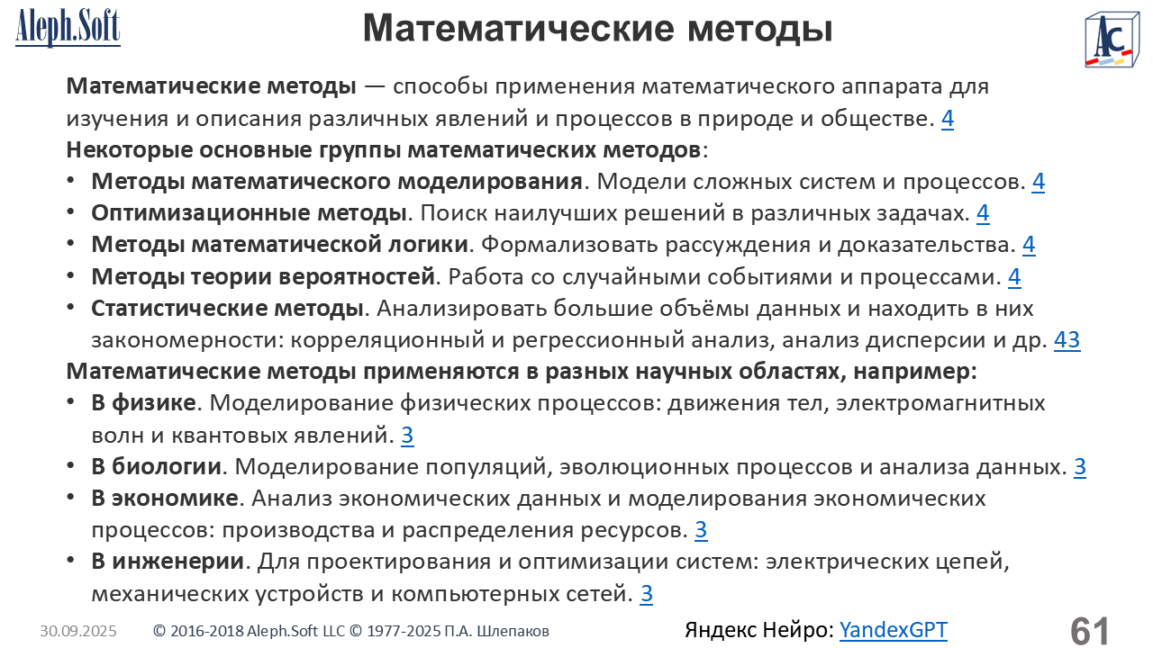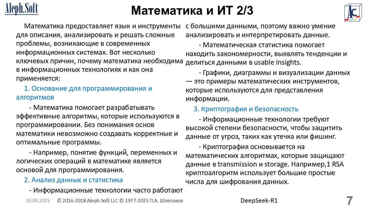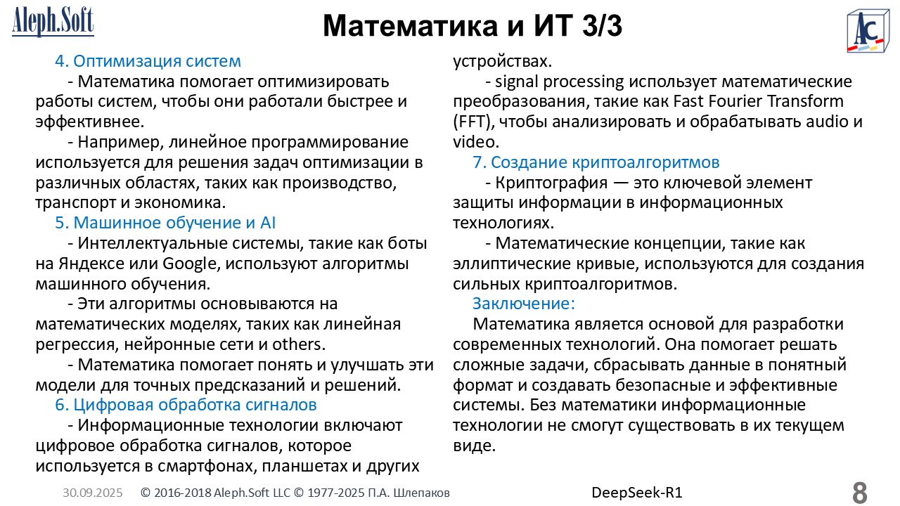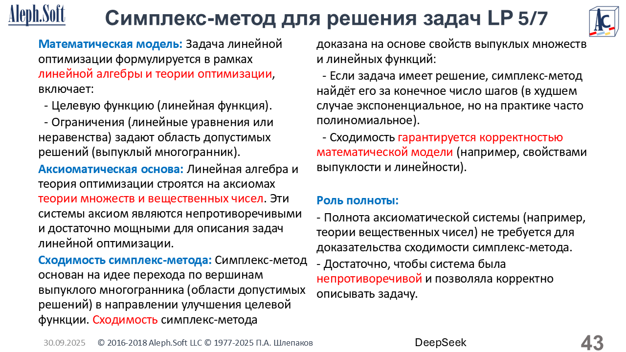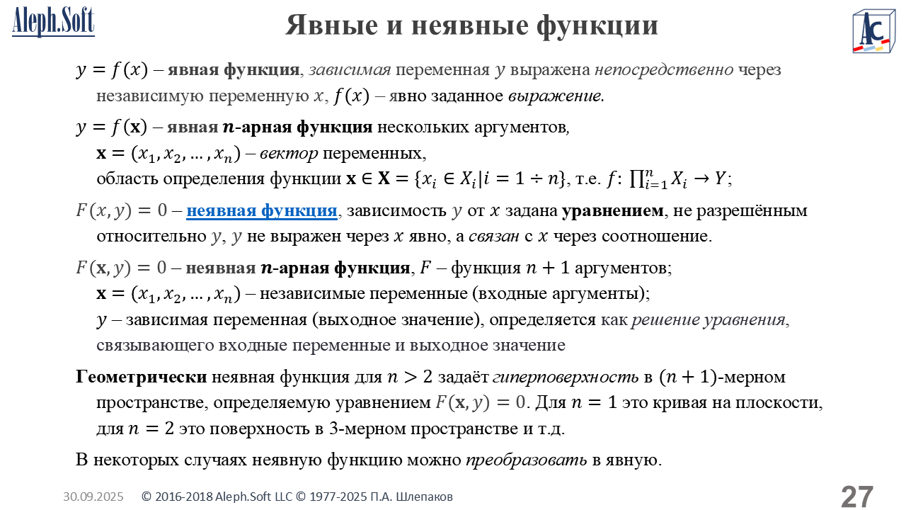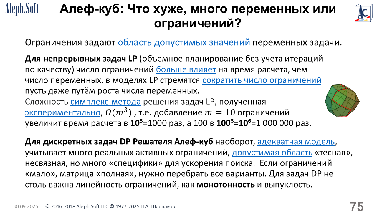 Aleph-cube 9-5-2: Информационные системы и IT технологии в нефтегазовой отрасли. Единый подход. Российский государственный геологоразведочный университет (МГРИ). Нефтегазовый факультет. Раздел 2. Математические понятия и термины в ИТ. Парадигмы программирования. Методы оптимизации. Решатель Алеф-куб. Стандарты в математике. 2025.