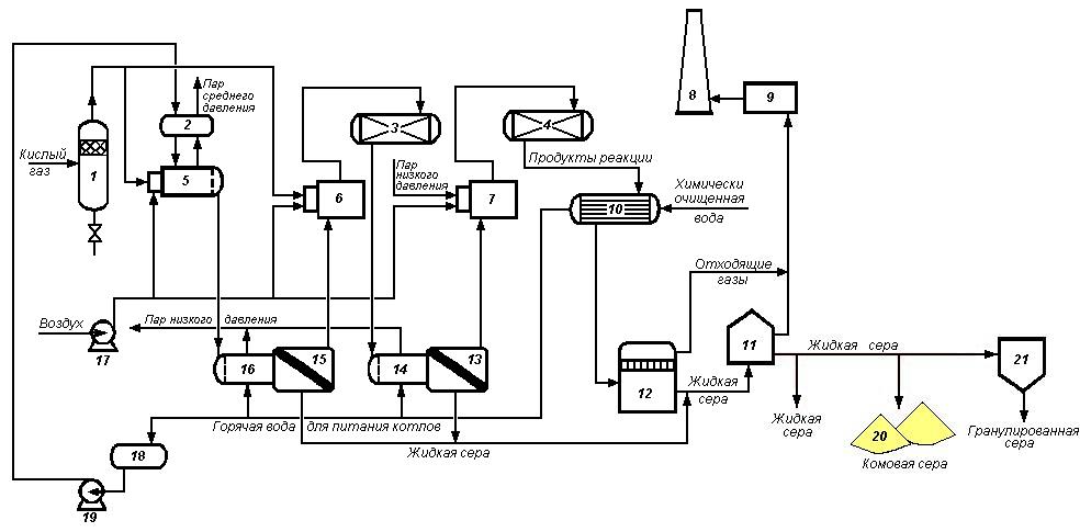 Рисунок Принципиальная схема установки производства элементарной серы
