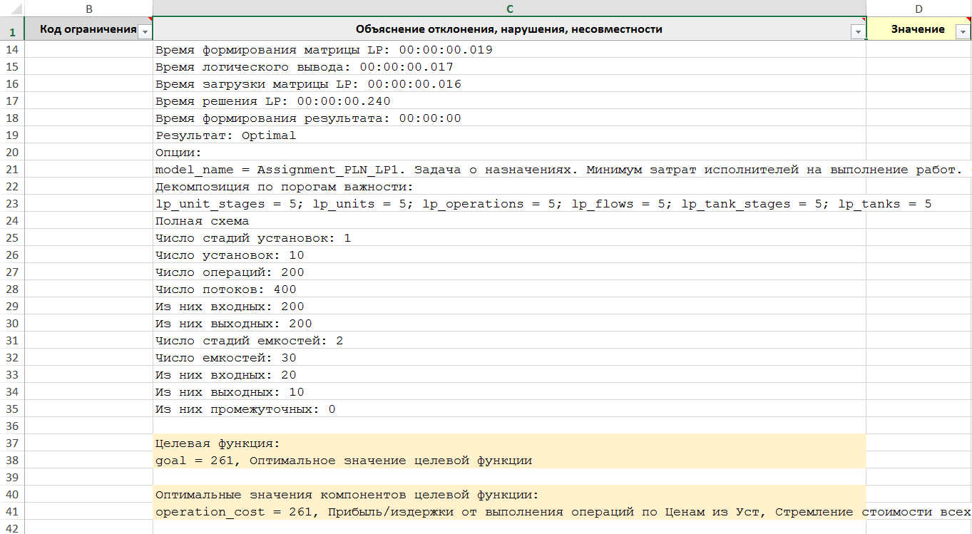 Рисунок. Фрагмент трассы объяснений Решателя LP