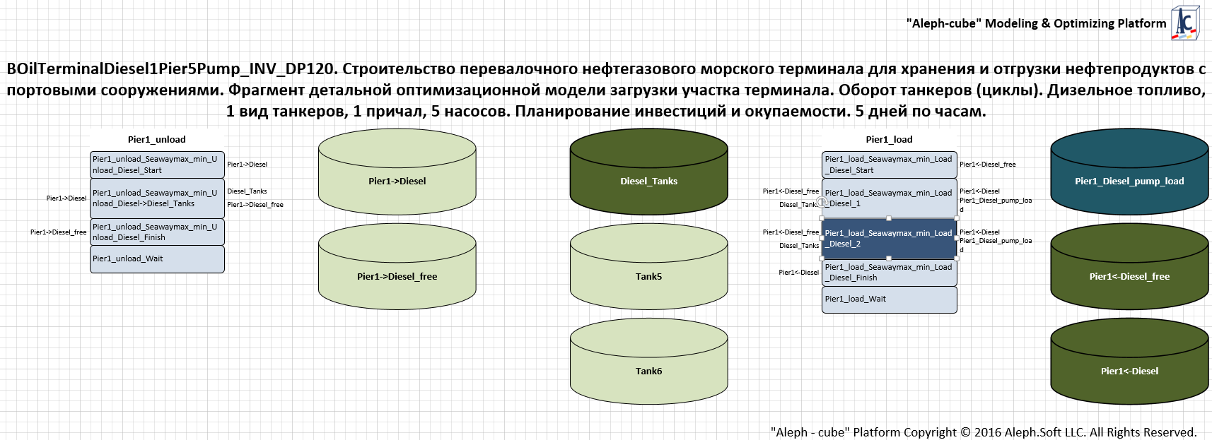 Модель рассматривает участок терминала, затрагивающего оборот танкеров, который включает поступление, перевалку и отгрузку дизельного топлива одним видом танкеров, на одном причале.
