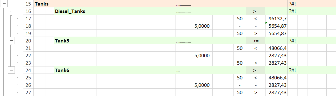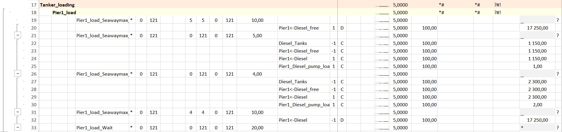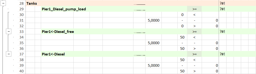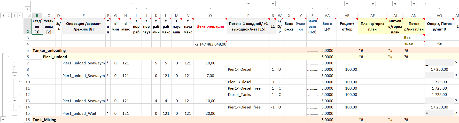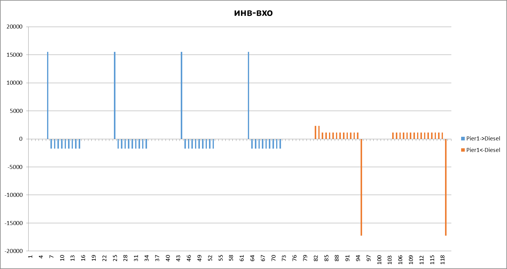 Рисунок. Фрагмент расписания уровня запасов в емкостях
