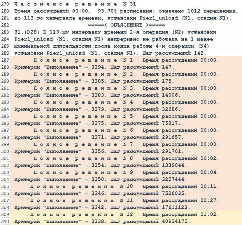 Рисунок. Фрагмент трассы объяснений хода рассуждений Решателя DP