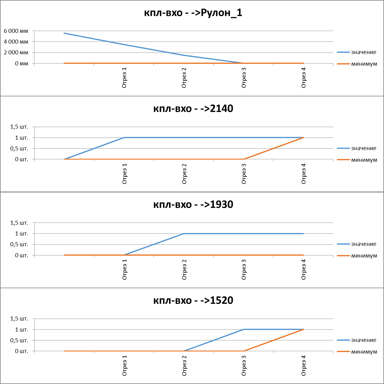 Дополнительная операция «*_стоп_разрез», не имеющая потоков, используется для отражения случая, когда разрезать рулон на один из указанных кусков уже невозможно (т.е. остается остаток).