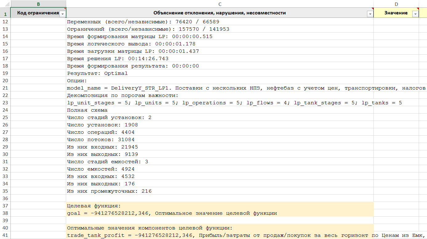 Рисунок. Фрагмент трассы объяснений Решателя LP