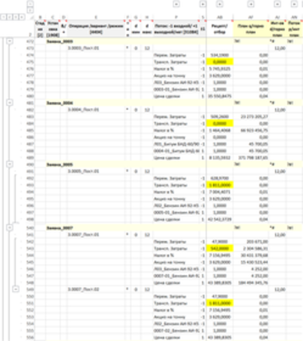 Следующей стадией являются заявки на поставку продукции. Установками являются отдельные строка заявки клиентов. В качестве операций используются — альтернативные варианты поставки продукции клиенту, различающиеся поставщиком, продуктом (близким по характеристикам). Потоками становятся конкретные параметры поставки – поставляемая продукция, а также финансовые параметры поставки – стоимость сделки, налоги, акцизы, переменные затраты и транспортные затраты.