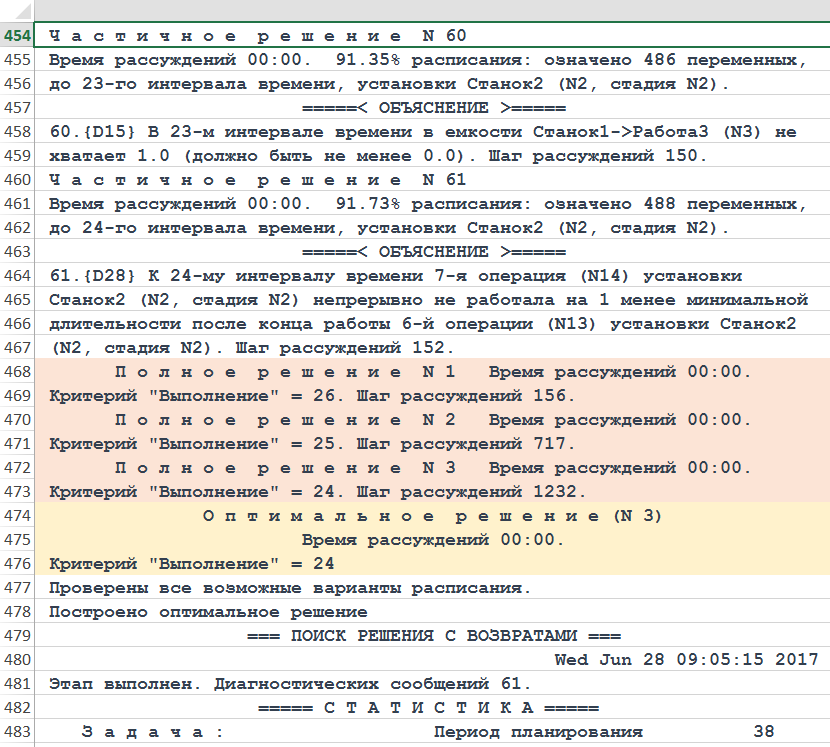 Рисунок. Фрагмент трассы объяснений хода рассуждений Решателя DP