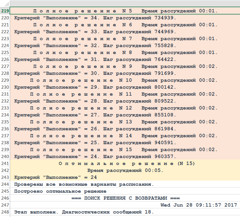 Рисунок. Фрагмент трассы объяснений хода рассуждений Решателя DP