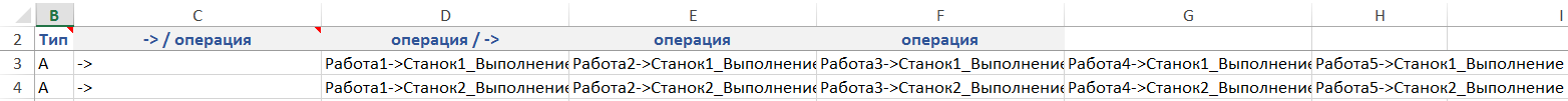 Рисунок. Фрагмент расписания выполнения операций