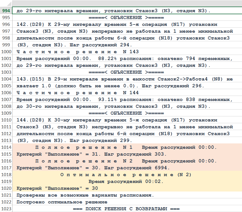 Рисунок. Фрагмент трассы объяснений хода рассуждений Решателя DP