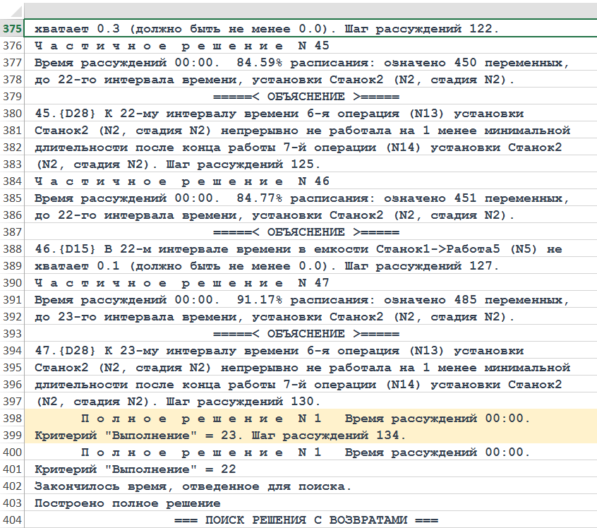 Рисунок. Фрагмент трассы объяснений хода рассуждений Решателя DP