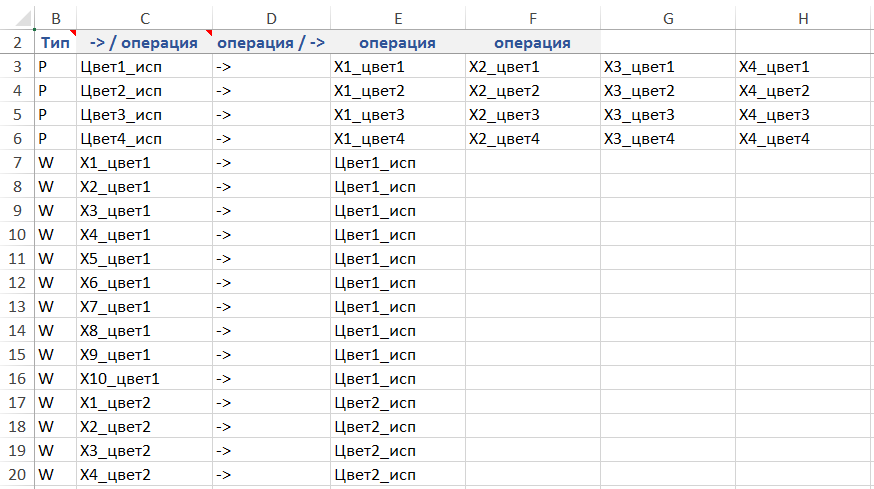 Ограничение на разный цвет соседних вершин, который задается через ограничение на альтернативности операций. Для каждого ребра устанавливается альтернативность покраски соединяемых вершин в один цвет.