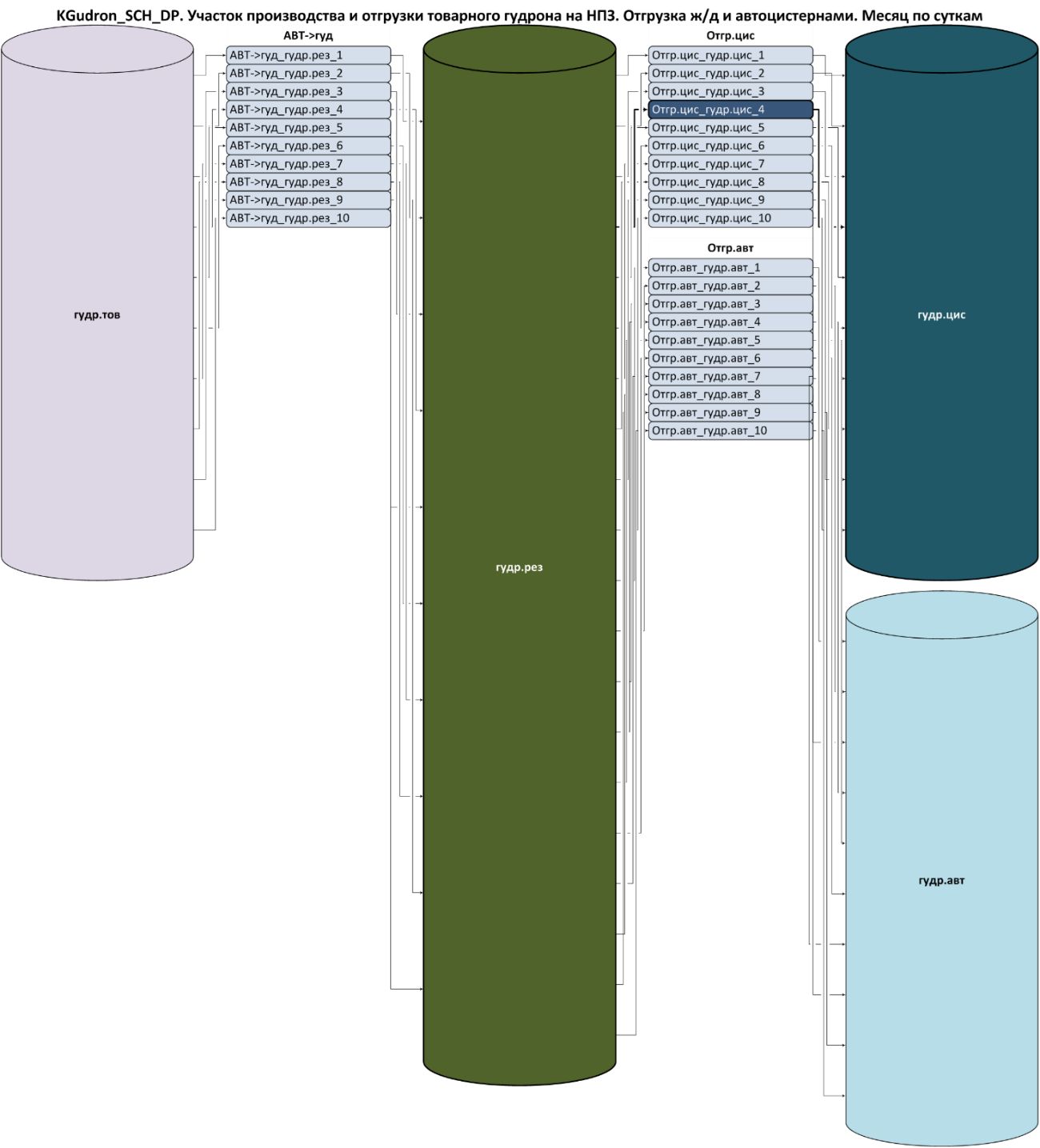 KGudron_SCH_DP31. Участок производства и отгрузки товарного гудрона на НПЗ. Отгрузка ж/д и автоцистернами. Календарное планирование. Месяц по суткам.