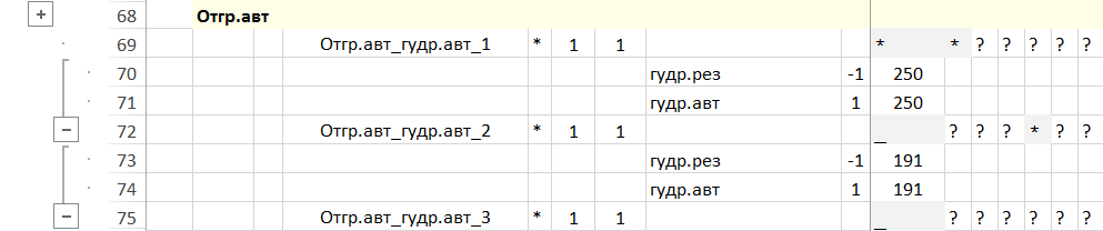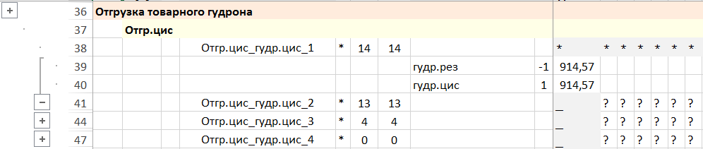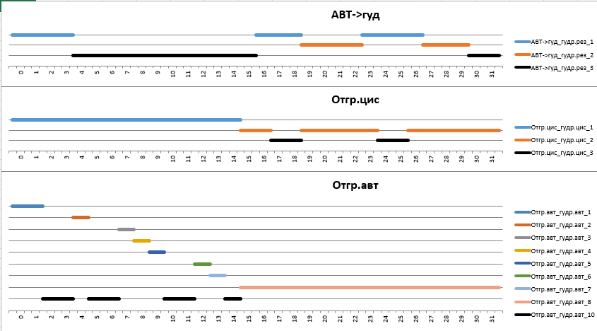 Рисунок. Фрагмент расписания уровня запасов в емкостях