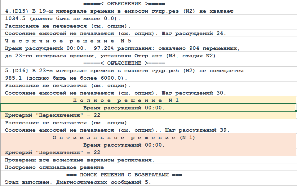 Рисунок. Фрагмент трассы объяснений хода рассуждений Решателя DP