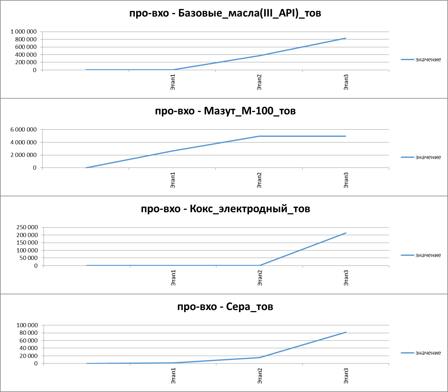 Моделирование материальных балансов за год по каждому этапу строительства НПЗ.