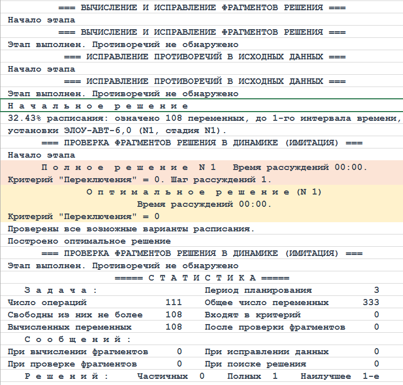 Результаты решения