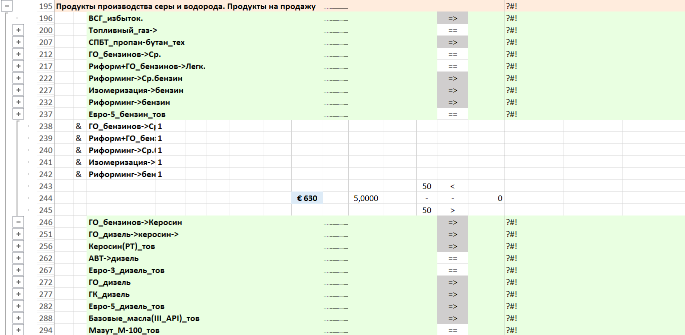 См. Объект LOilRefBal. НПЗ «под ключ». Совместный материальный баланс для всех этапов I-III.