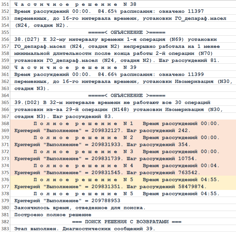 Рисунок. Фрагмент трассы объяснений хода рассуждений Решателя DP