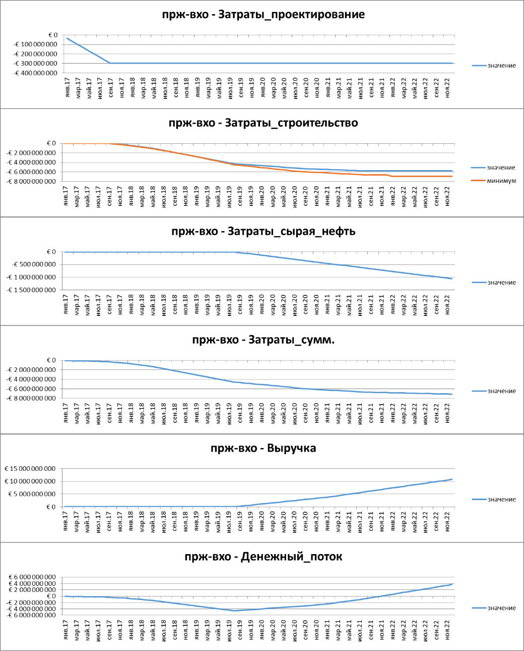 Добавлена дополнительная установка «Проектирование» с операциями «Оптимизация_проекта» отражающая этап детального проектирования с финансовым потоком затрат на проектирование и «Реализация_проекта» — отражающая этапы строительства и эксплуатации, не имеющая потоков.