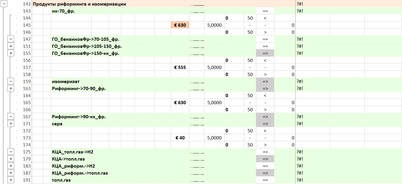 См. Объект LOilRefBal. НПЗ «под ключ». Совместный материальный баланс для всех этапов I-III.