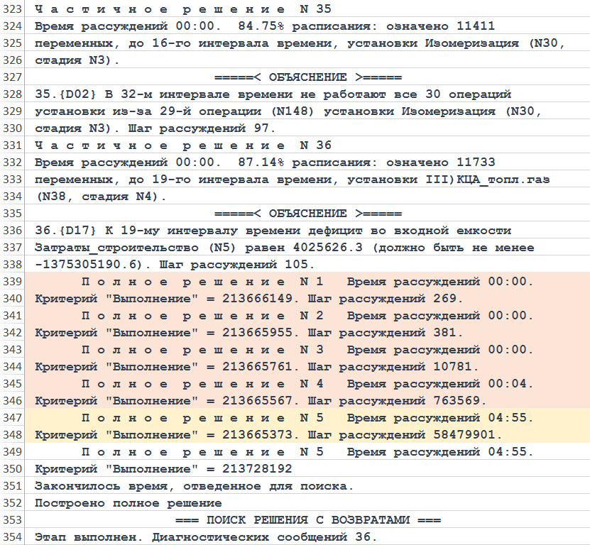 Рисунок. Фрагмент трассы объяснений хода рассуждений Решателя DP