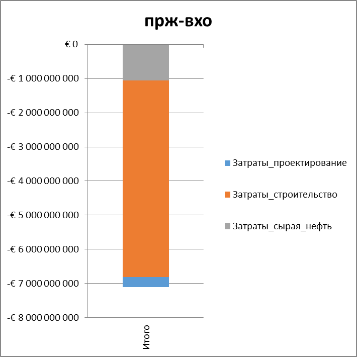 Потребление сырой нефти, а также водородсодержащего газа и химически очищенной воды, используемых в процессах убывающим итогом. Затраты на проектирование, строительство, сырье, суммарные затраты.