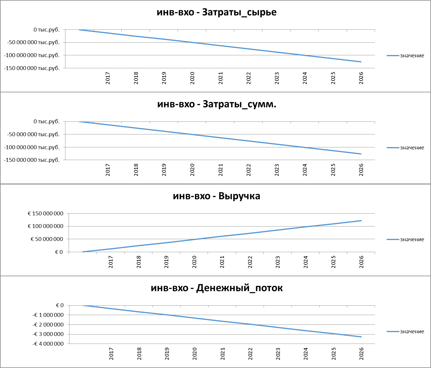 Стоимость реализованной продукции и затрат на сырье суммарная за 10 лет: