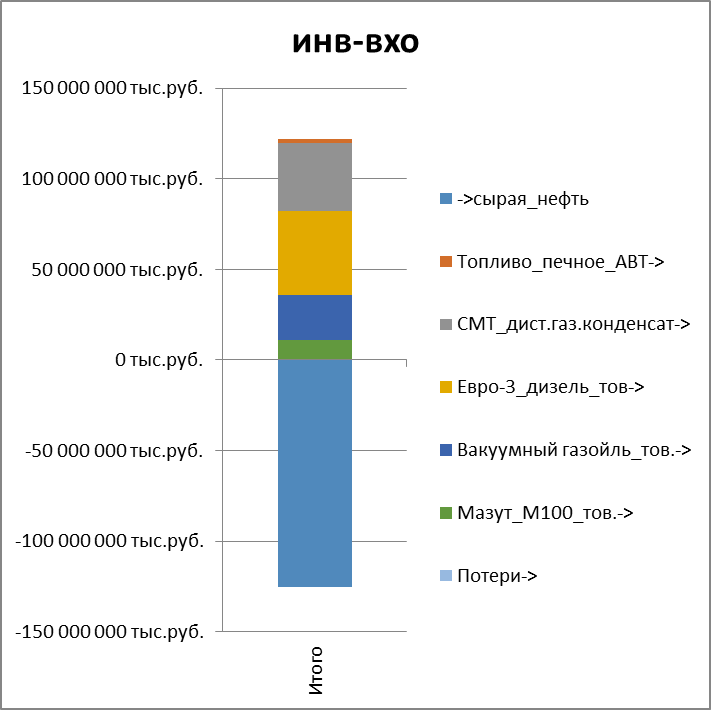 Баланс потребляемого сырья и выпущенной продукции суммарный за 10 лет, т.: