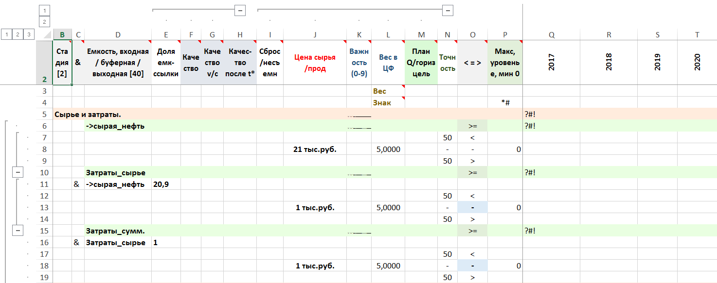 Рисунок. Фрагмент расписания уровня запасов в емкостях