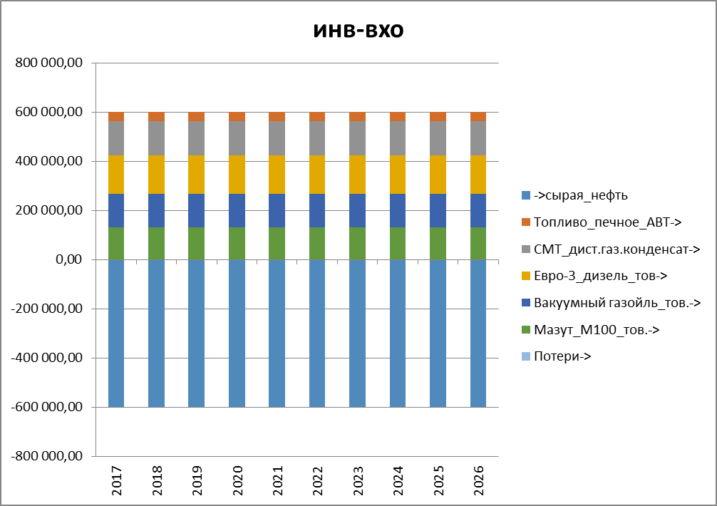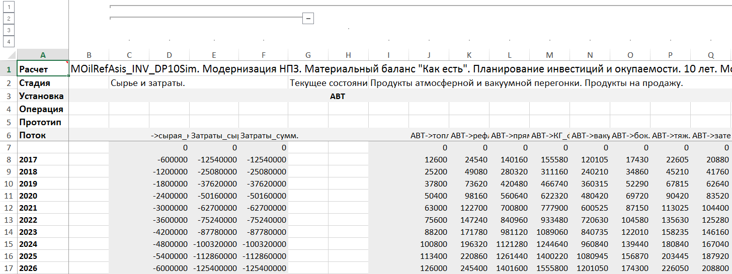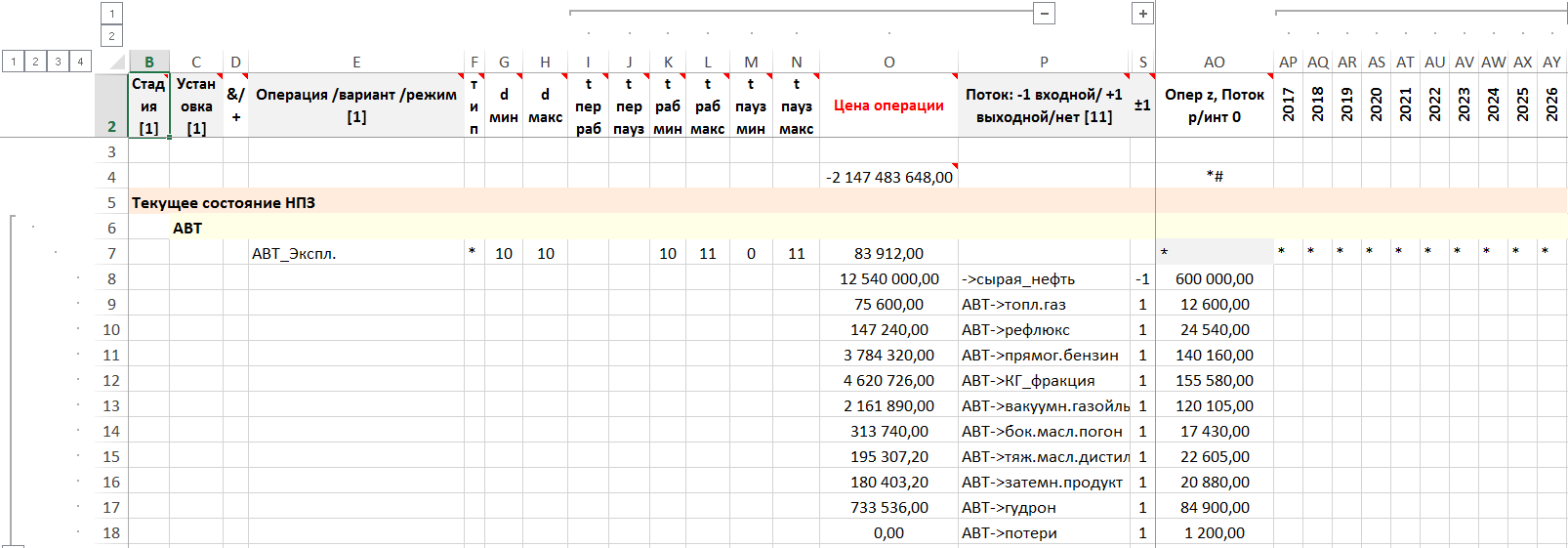 Моделирование календарного плана на 10 лет по году для текущего состояния НПЗ (до реконструкции).