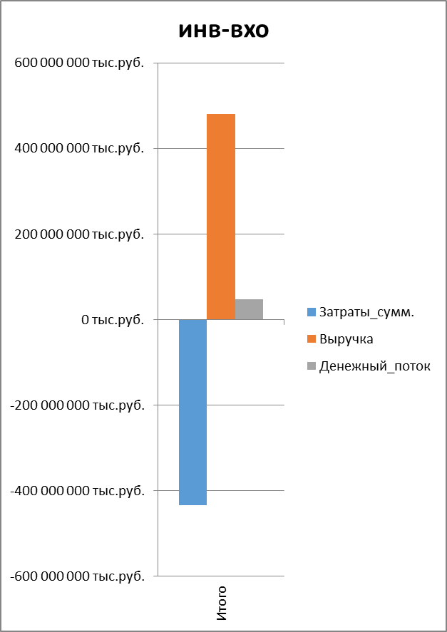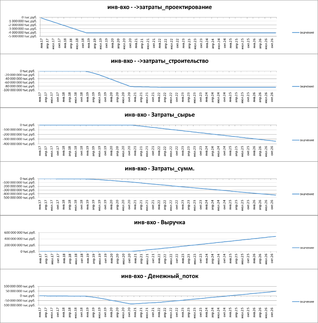Стоимость реализованной продукции и затрат на сырье суммарная за 10 лет: