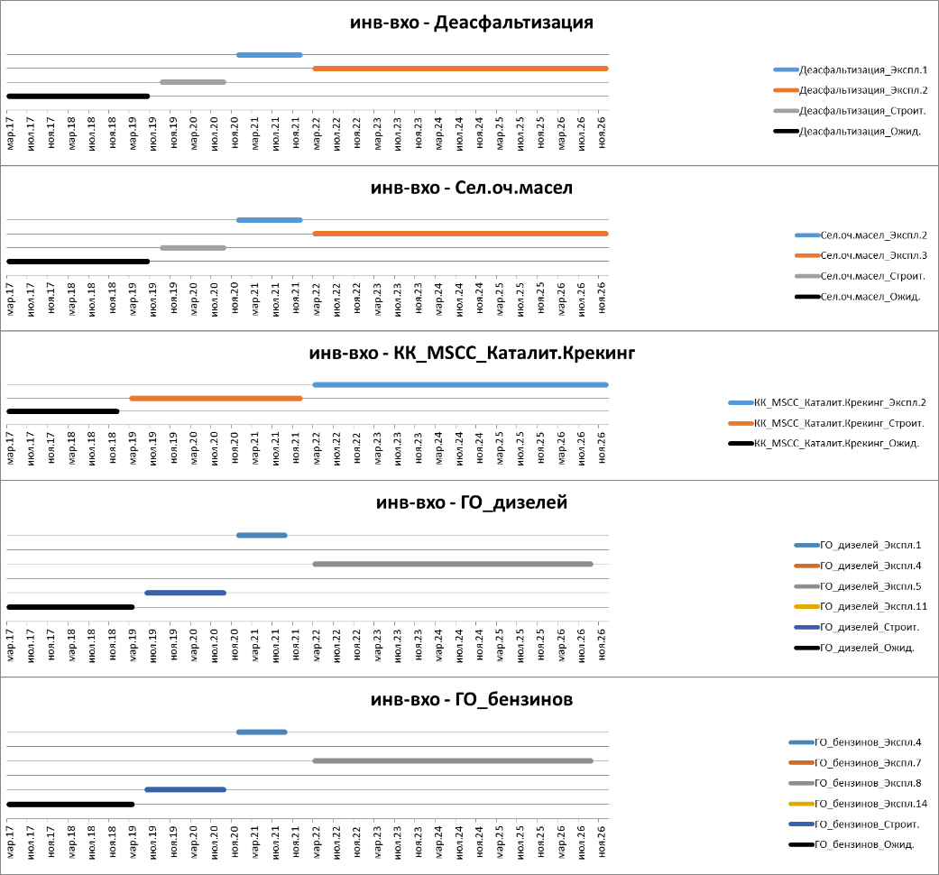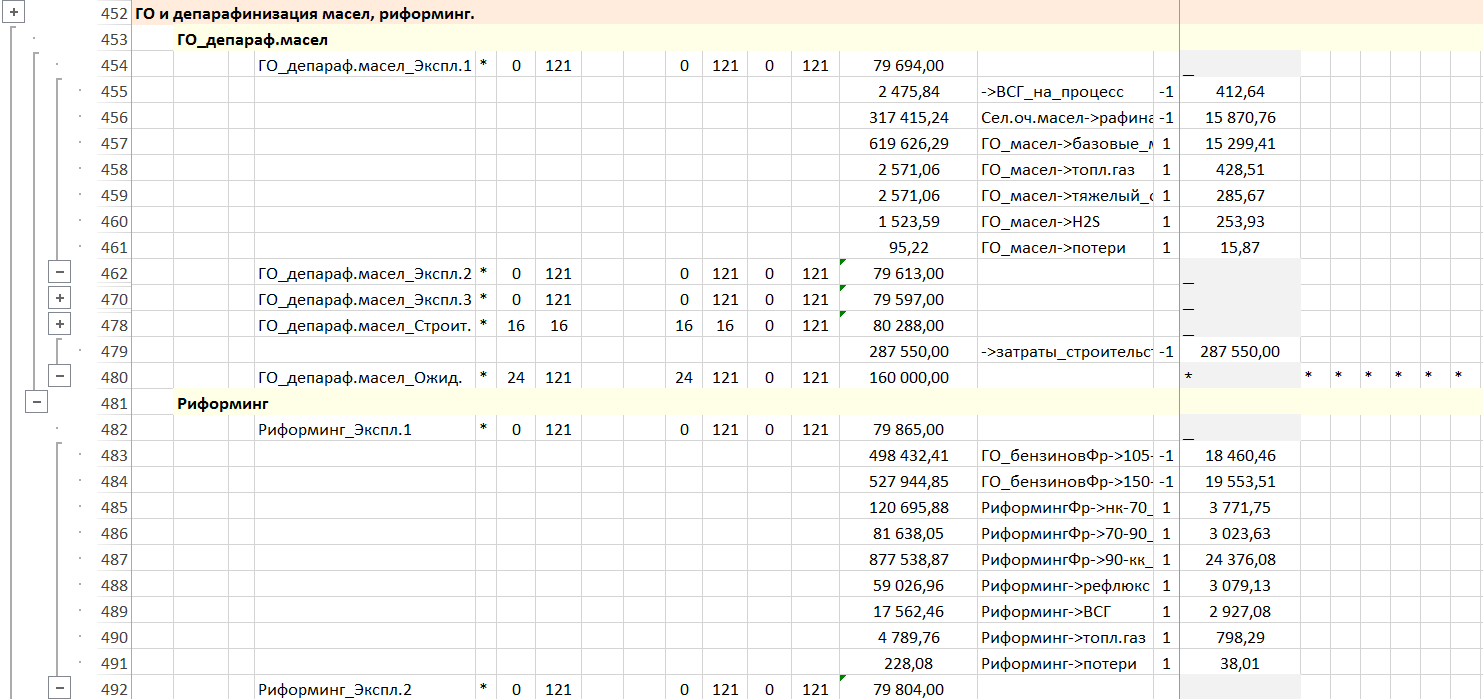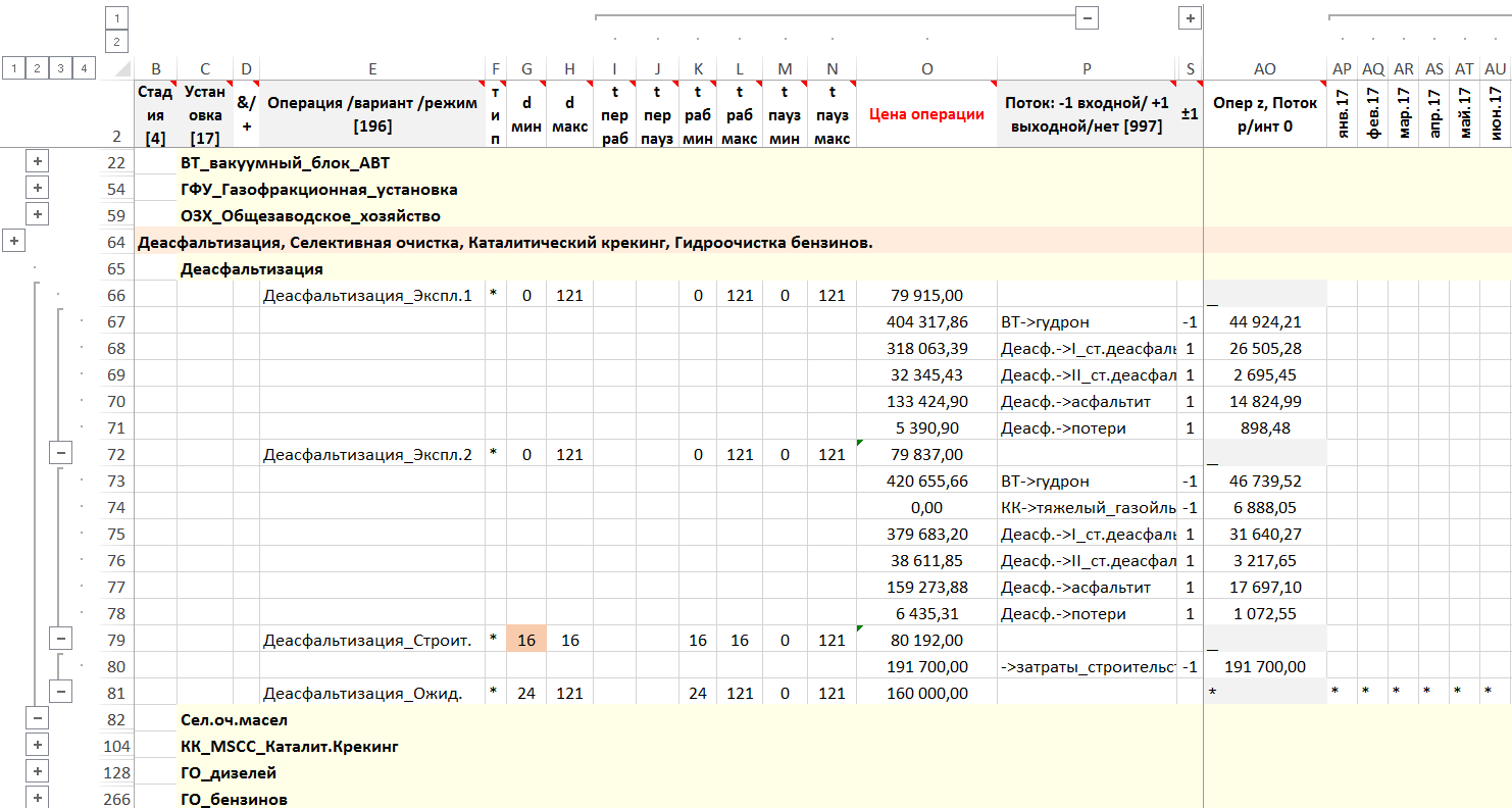 Моделирование календарного плана на 10 лет по месяцам для модернизации и реконструкции НПЗ.