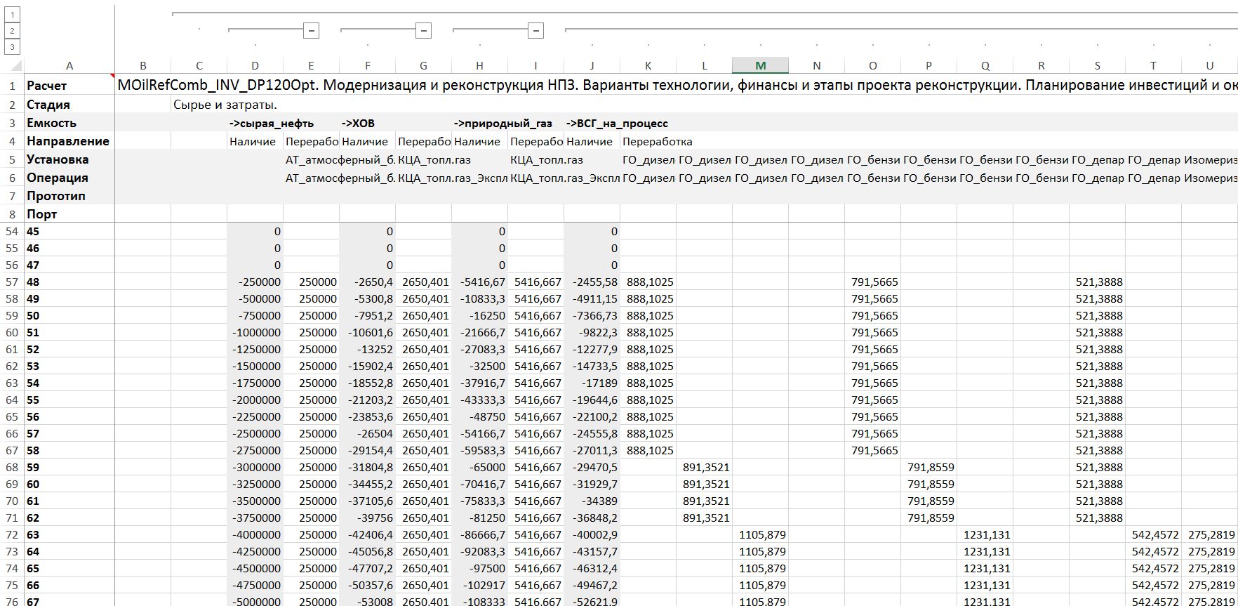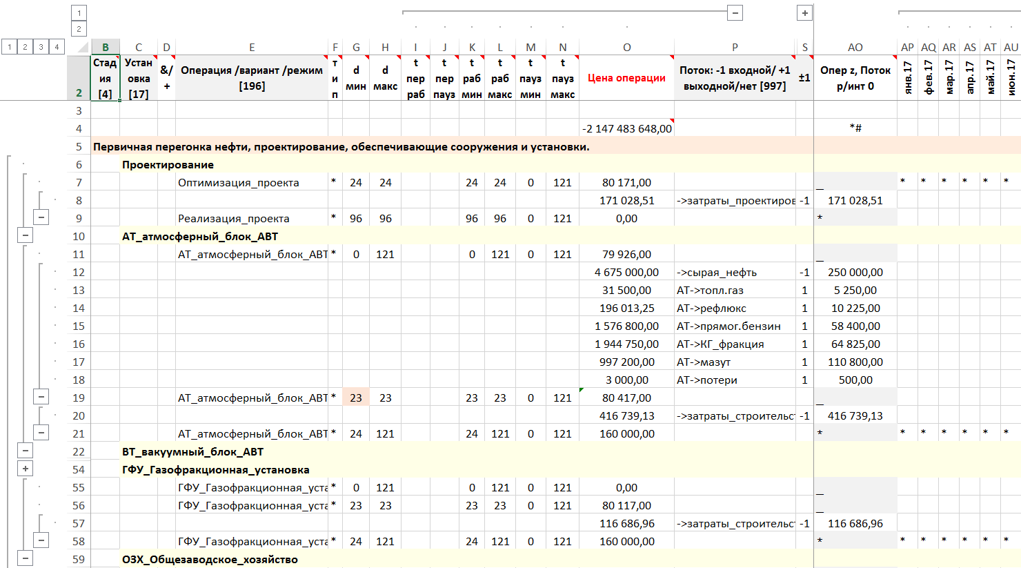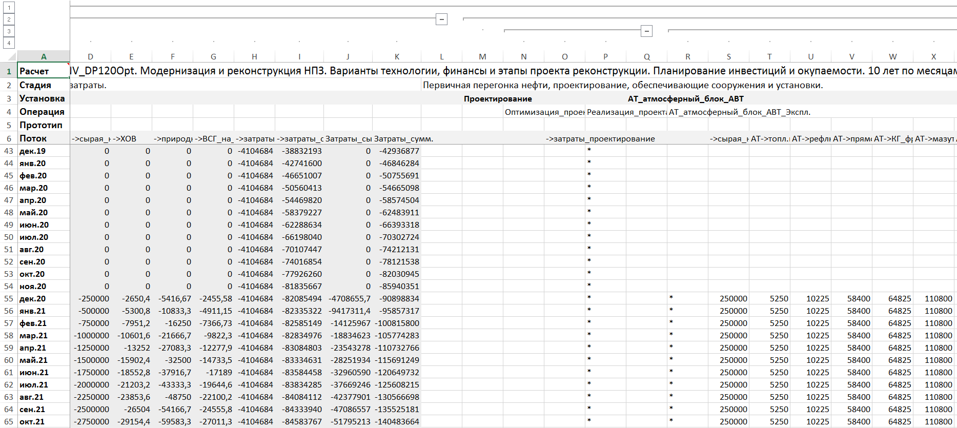 Моделирование календарного плана на 10 лет по месяцам для модернизации и реконструкции НПЗ.
