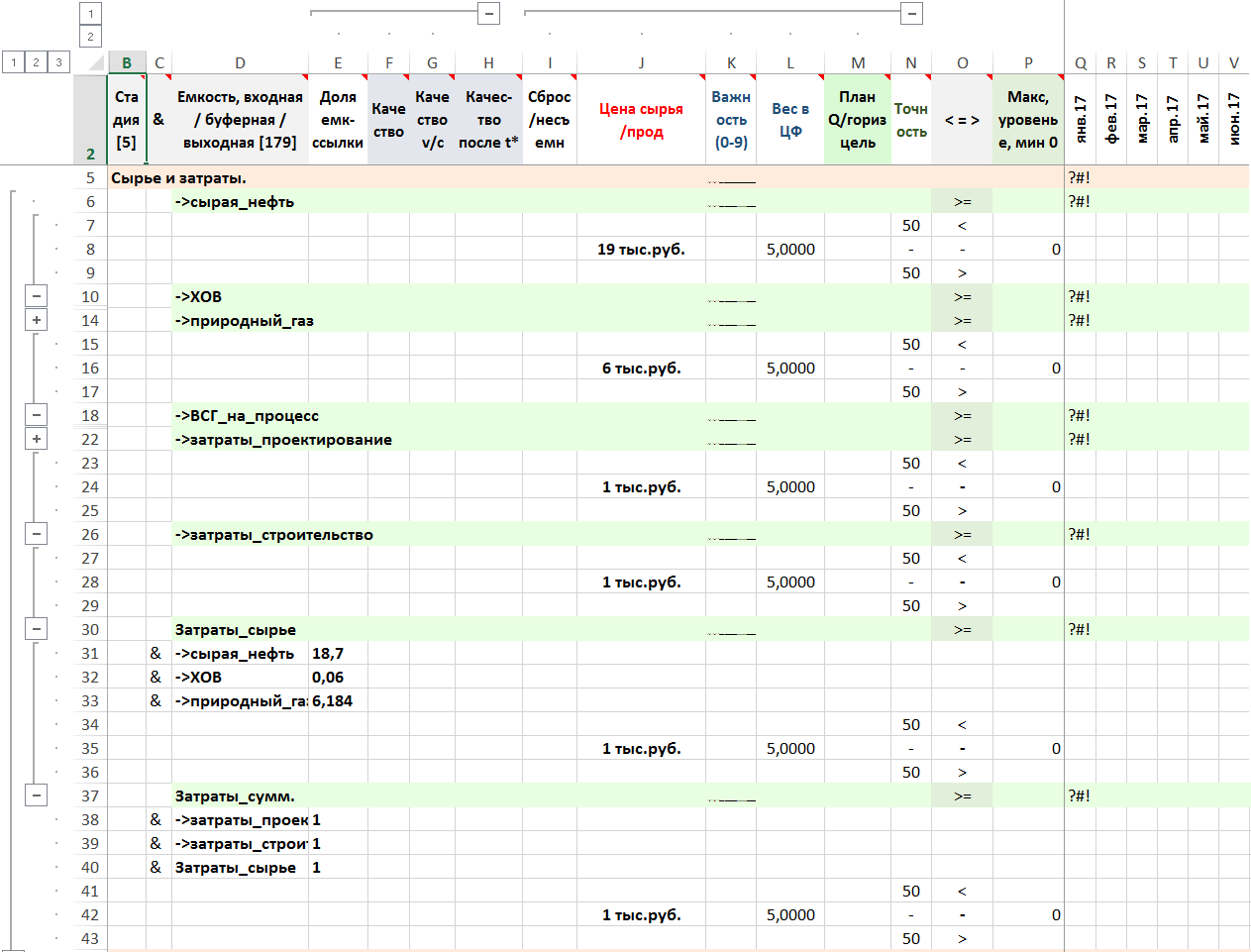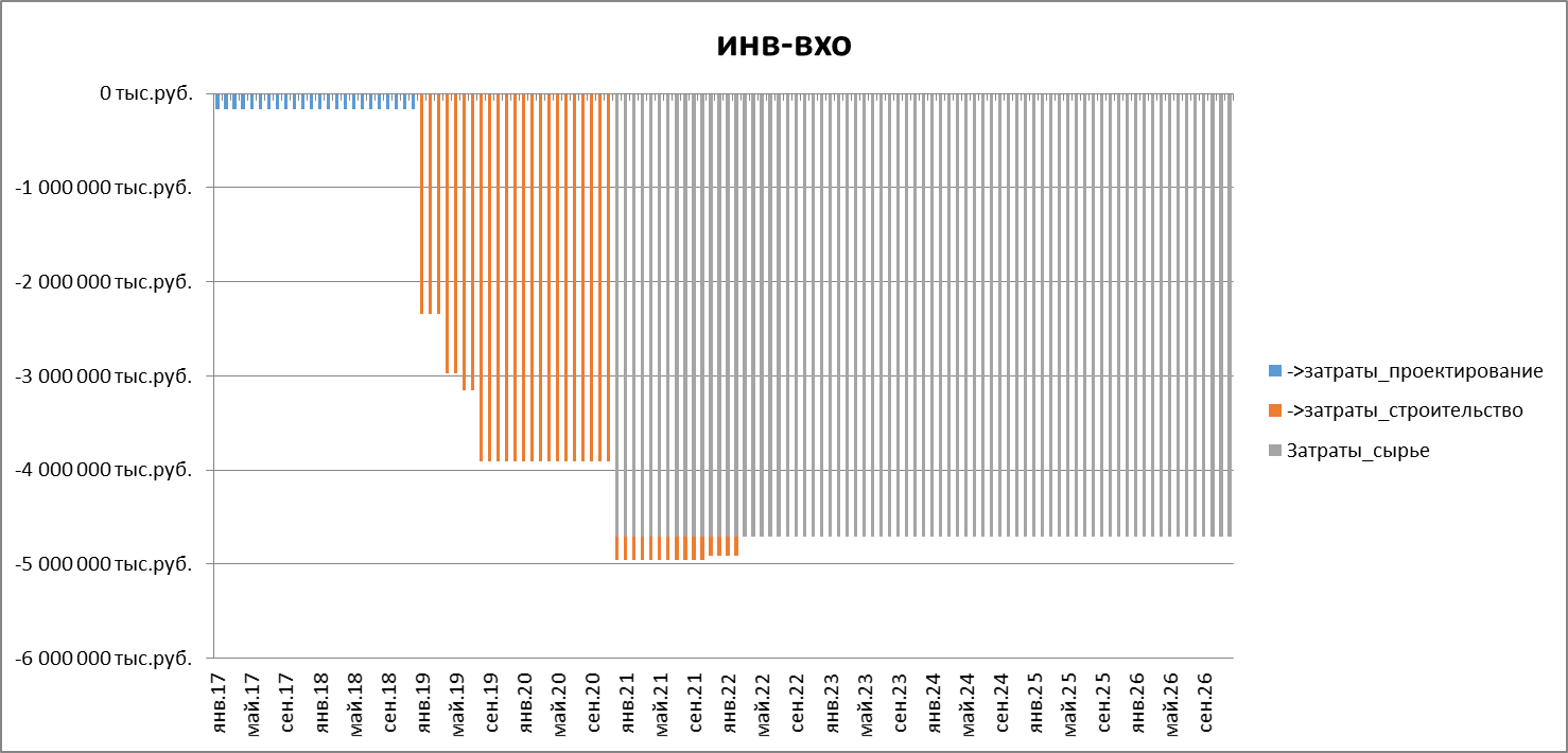 Капитальные затраты и сырье по месяцам:
