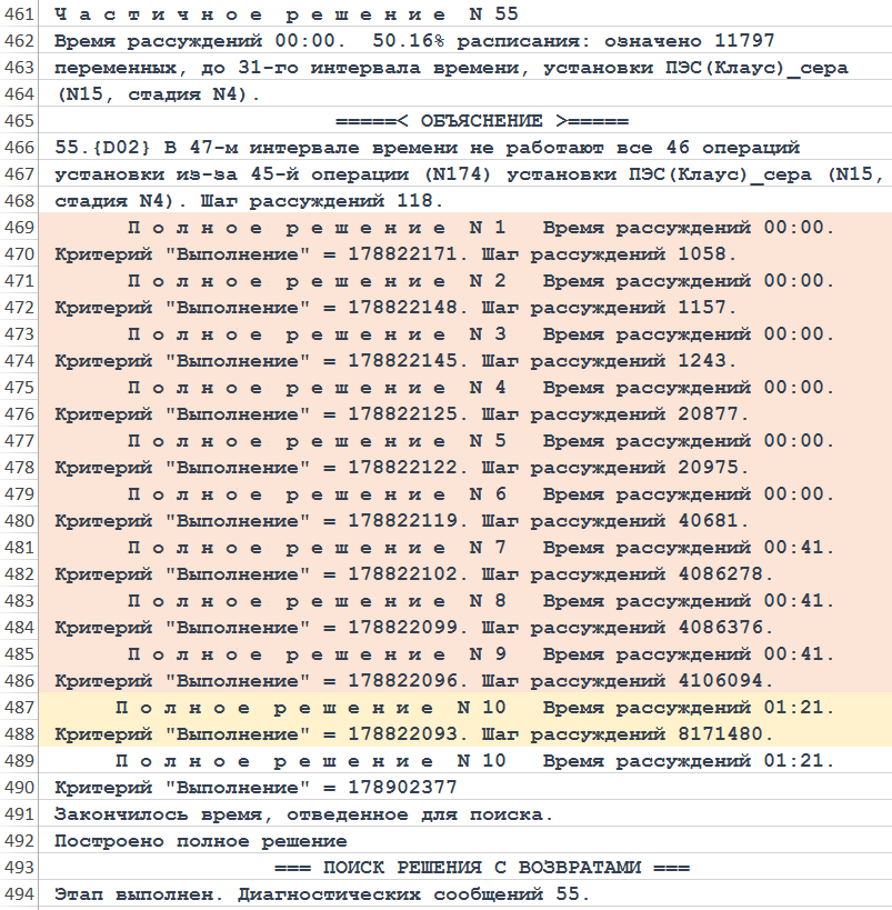Рисунок. Фрагмент трассы объяснений хода рассуждений Решателя DP