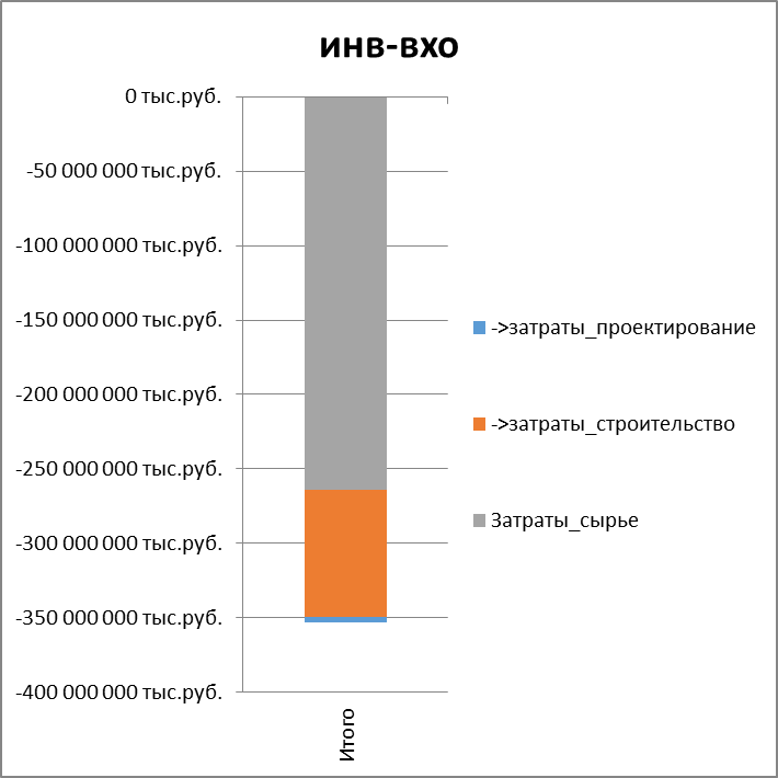 Потребление сырой нефти, а также водородсодержащего и природного газа, химически очищенной воды, используемых в процессах убывающим итогом. Затраты на проектирование, строительство, сырье, суммарные затраты.