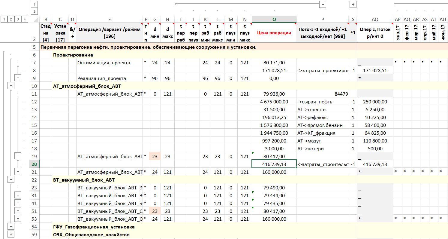 Моделирование календарного плана на 10 лет по месяцам для модернизации и реконструкции НПЗ.