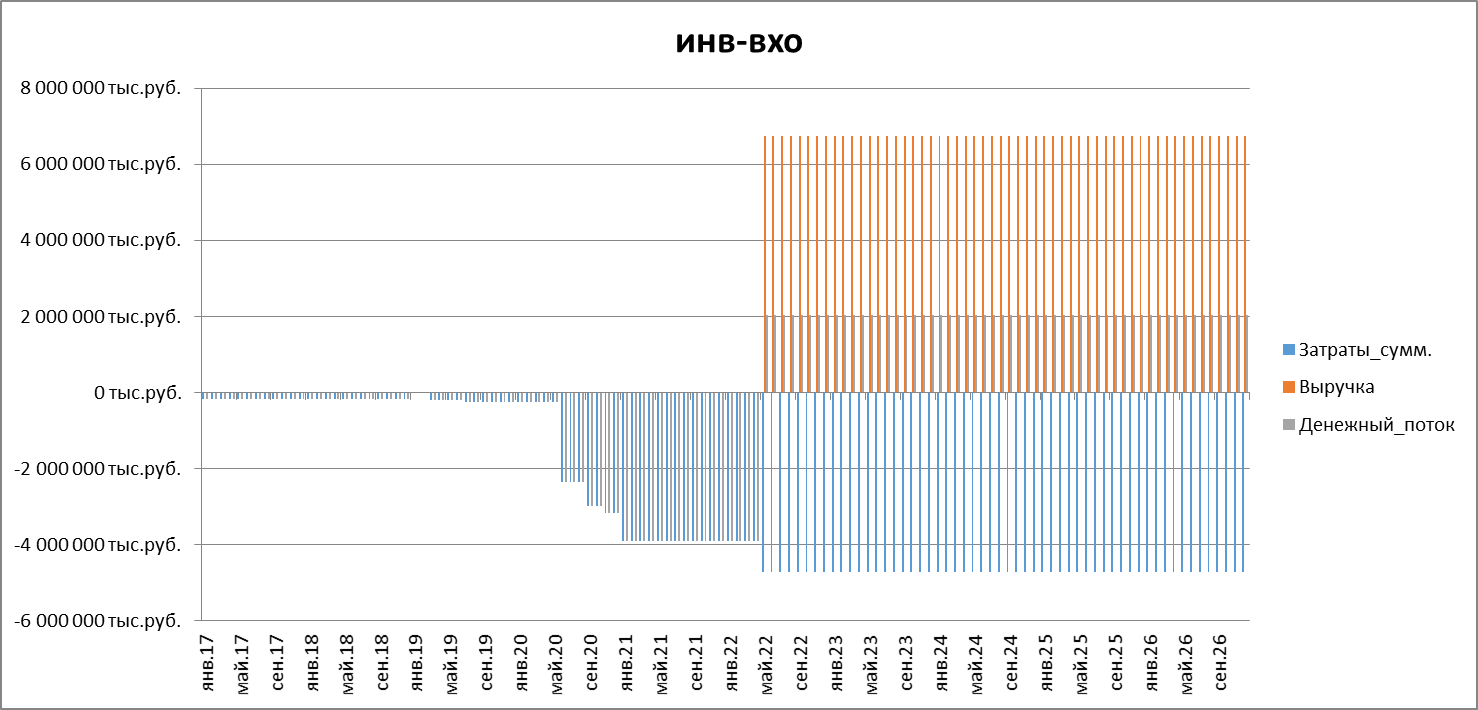 Стоимость реализованной продукции и затрат на сырье суммарная за 10 лет: