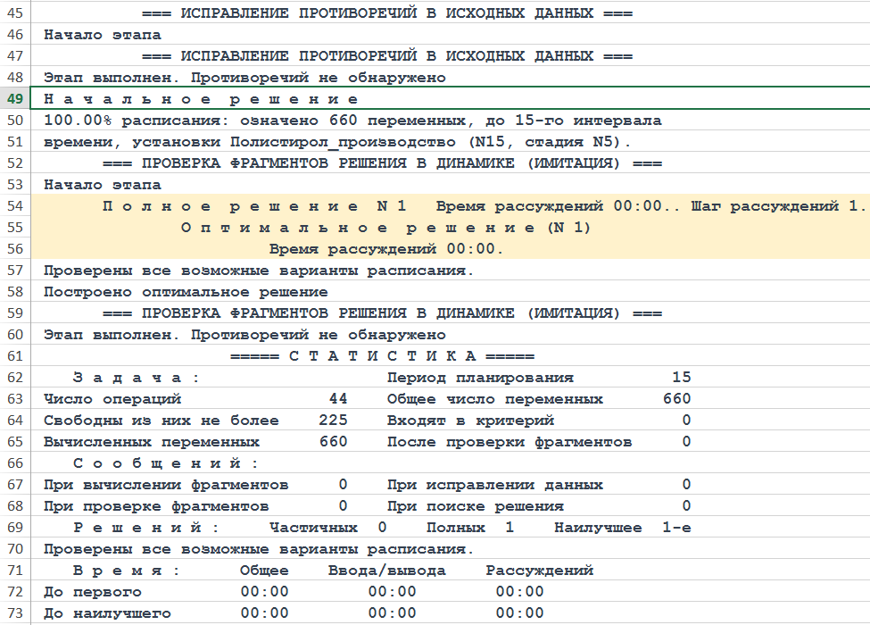 Рисунок. Фрагмент расписания уровня запасов в емкостях