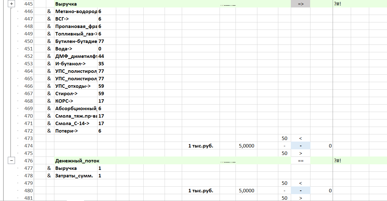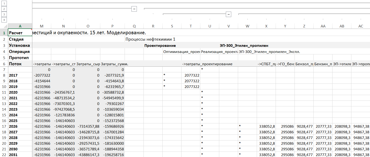 Дополнительная установка «Проектирование» с операциями «Оптимизация_проекта» отражающая этап детального проектирования с финансовым потоком затрат на проектирование и «Реализация_проекта» — отражающая этапы строительства и эксплуатации, не имеющая потоков.
