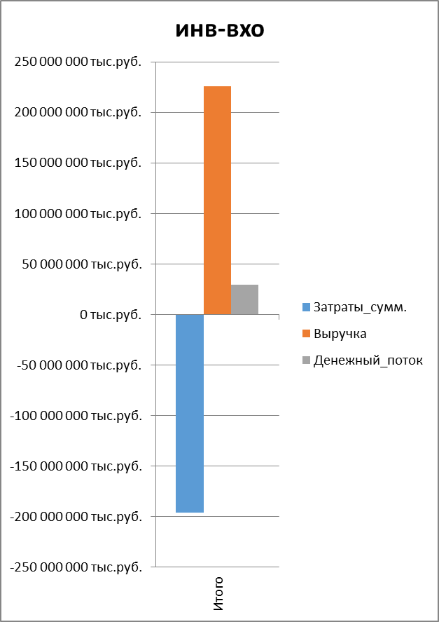 Стоимость реализованной продукции и затрат на сырье суммарная за 15 лет: