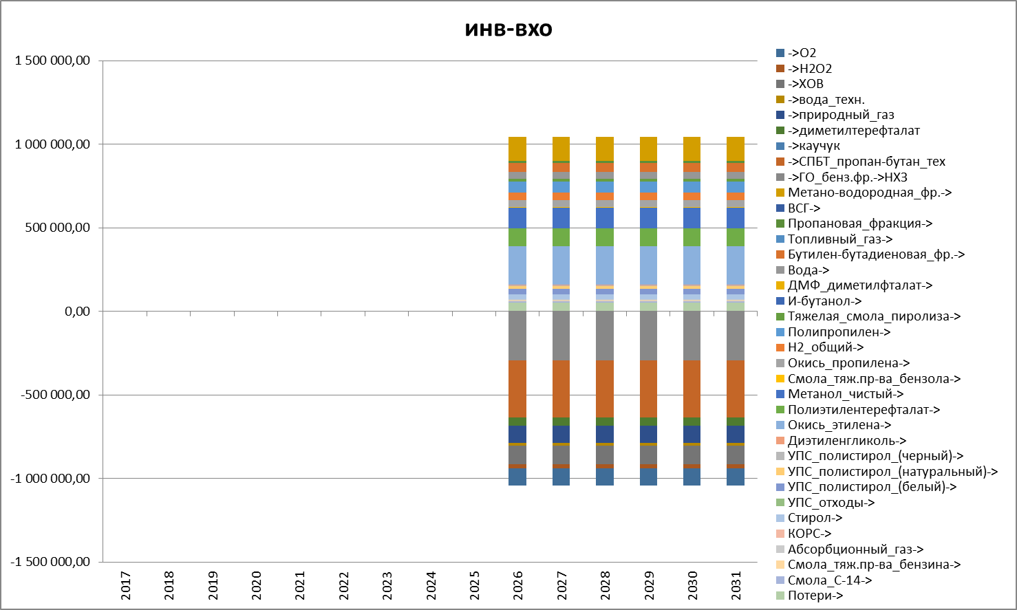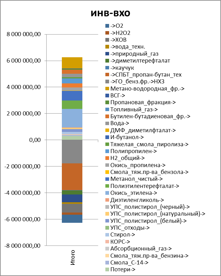 Баланс потребляемого сырья и выпущенной продукции суммарный за 15 лет, т.: