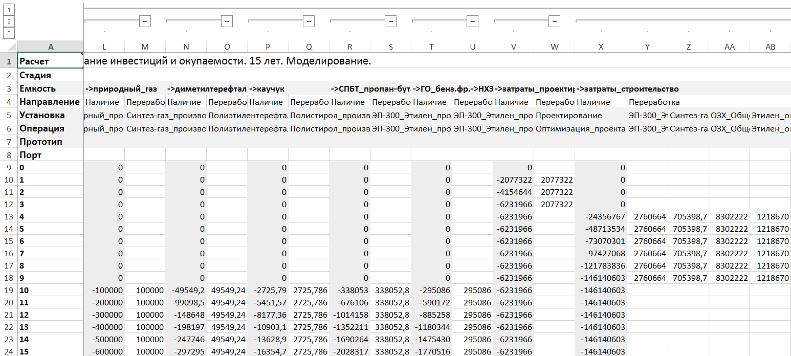 Моделирование календарного плана на 15 лет по годам для строительства нефтехимического комбината.
