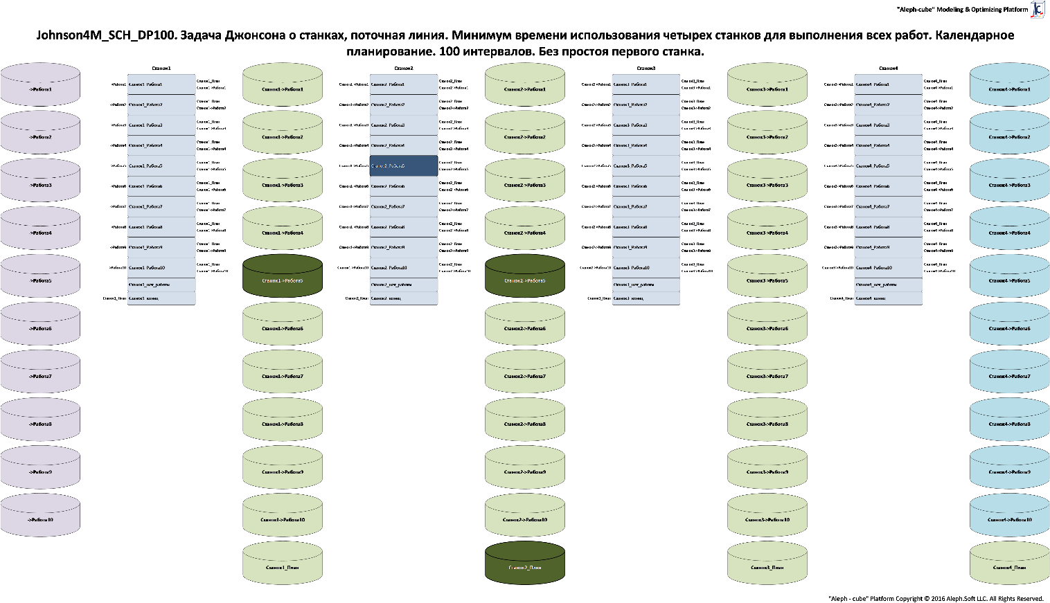 Число установок соответствует числу станков – 4. Число работ равно 10.