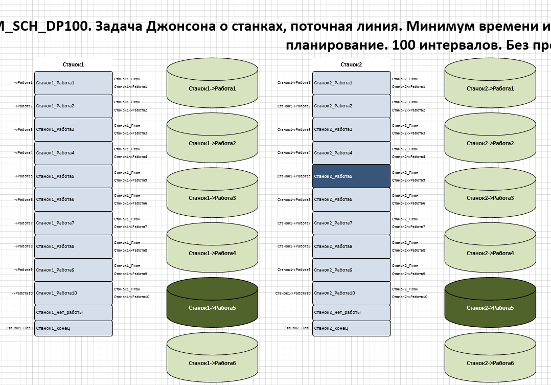 Добавлены потоки, отражающие план по выполнению работ на станках. Поток используется для отражения готовности перехода на окончание выполнения работ на станке, когда план по всем работам выполнен. Каждая операция выполнения работ выполняет план по работам на станке. Переход на операцию окончания выполнения работ на станке возможен, когда все работы на станке выполнены.
