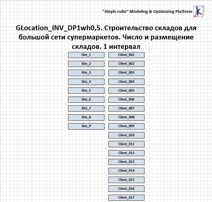 • Если на определенном месте склад не построен, то с него невозможна доставка клиенту. Одновременная пауза выбора места Site_I_Use и доставки всем клиентам со склада в этом месте Client_J_SiteI