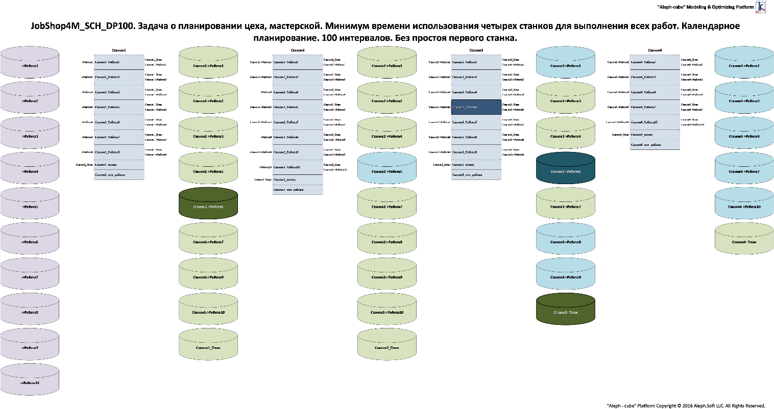 Отличие от объекта FlowShop4M – некоторые работы пропускают выполнение на определенных станках. То есть у каждой работы есть некоторая, возможно отличающаяся от других последовательность выполнения на станках.