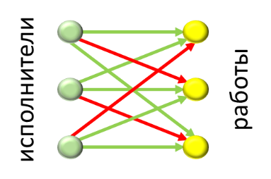 Задача о назначении исполнителей на работы – одна из фундаментальных задач комбинаторной оптимизации или исследования операций. Задача состоит в поиске минимальной суммы весов дуг во взвешенном двудольном графе.